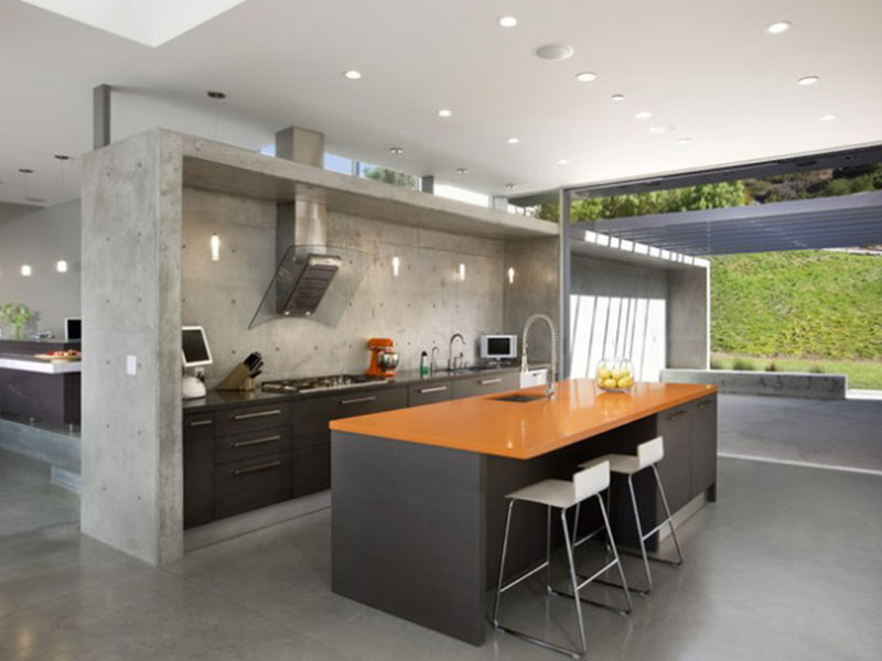 استفاده از سنگ دکوراتیو بتنی و بتن اکسپوز در آشپزخانه
